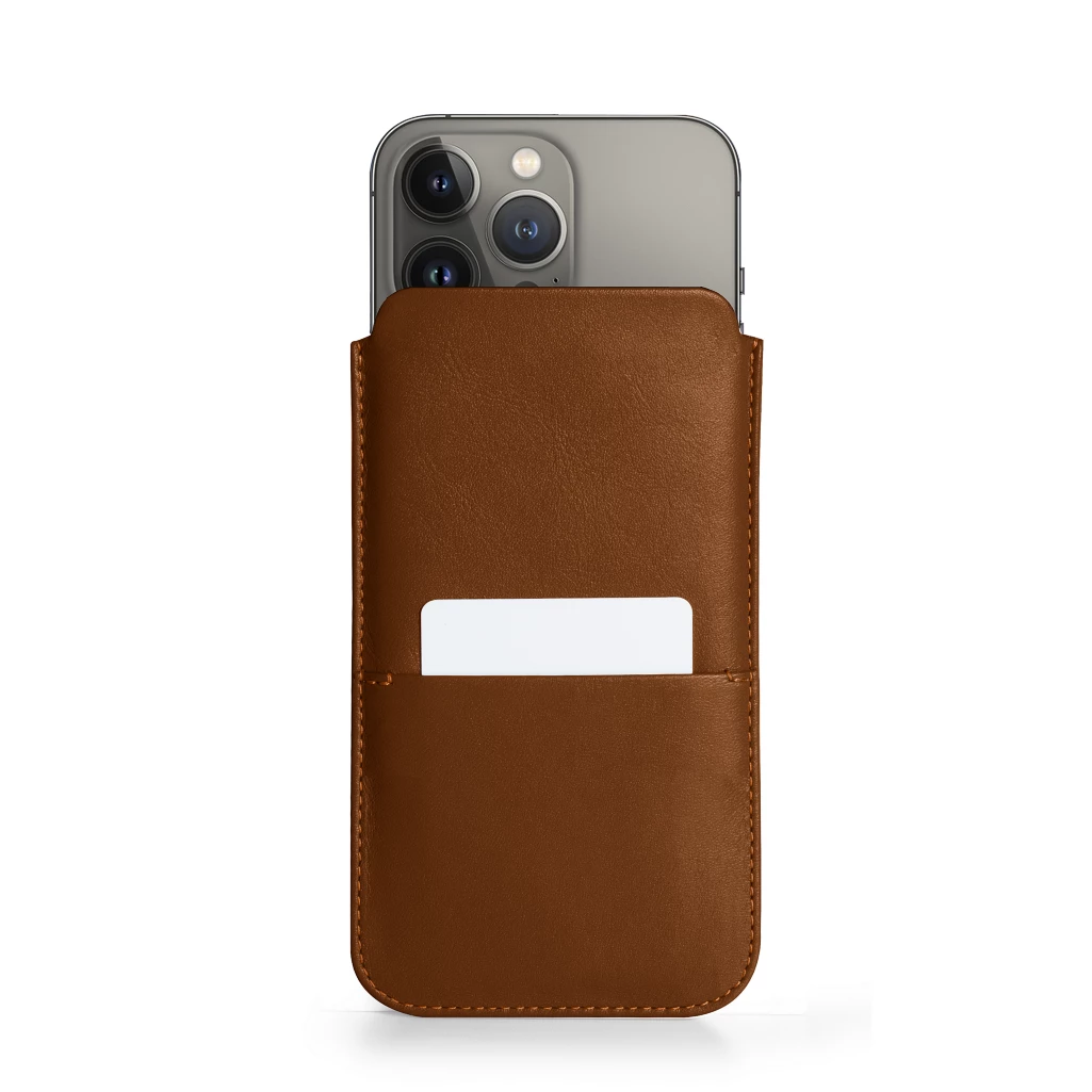 Pouch with Pocket for iPhone 13 Pro Tan  - Smooth Leather