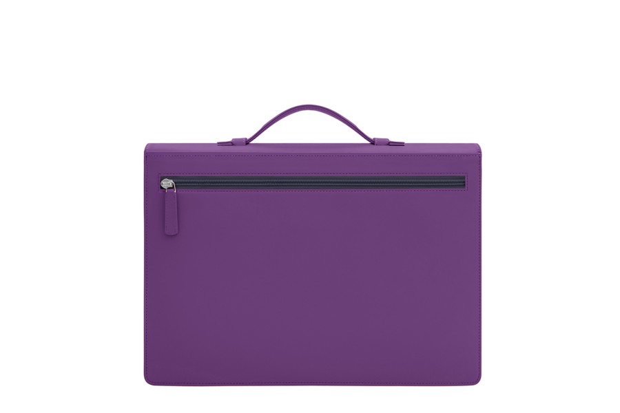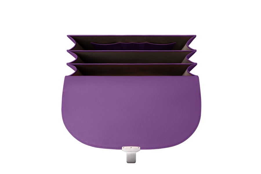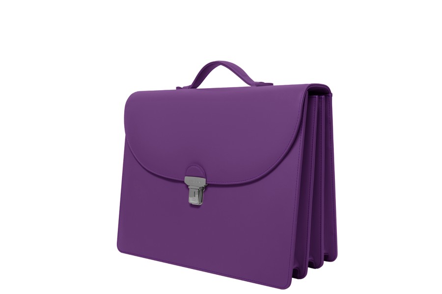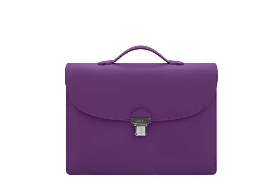 Briefcase with 3 gussets - Lavender - Smooth Leather