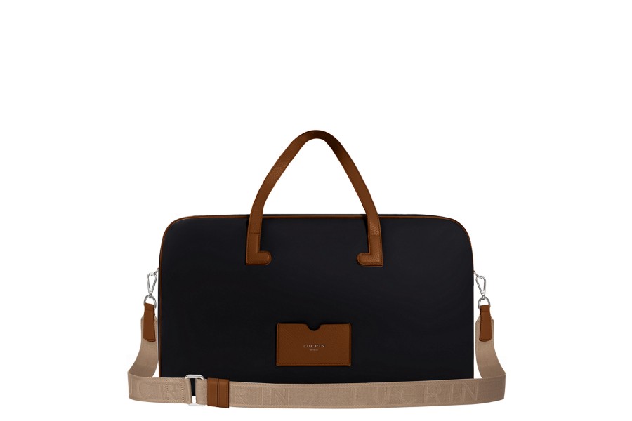 This gorgeous travel bag in nylon and leather, by Lucrin, will quickly become your ideal companion for travelling. A multifunctional bag; suitable as your cabin luggage, as a gym bag or for short weekend getaways with your better half. Light but sturdy, this bag has a large capacity, making it perfect for short and lengthy stays. The leather handles and the long central zipper in contrasting colours are cheerful additions to this bag. Delivered with a removable and adjustable cotton shoulder strap, carrying the bag is easier and more comfortable!