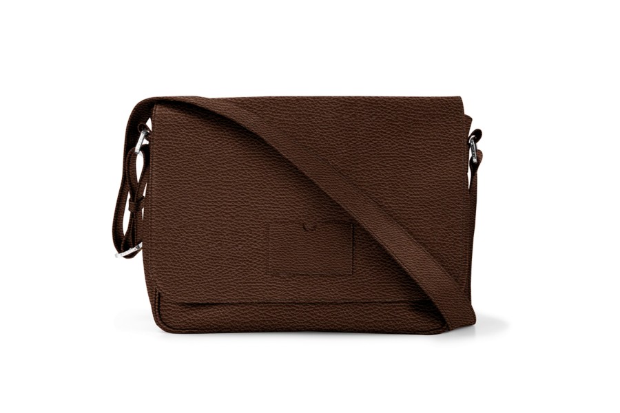 Great to carry everyday, this messenger bag comes with a large magnetised flap closure, rounded shape and soft conception. Two magnets help the flap of the mailbag snap shut and this is very practical when you are on the move. The cotton lining plus the zipped flat pocket inside the sling bag ensure that you can keep in your daily essentials, such as your phone, wallet and keys. The relatively large volume of this shoulder bag allows you to slip in your doc holder, notepad, copybook or a laptop of up to 17 inch. You can customise this leather crossbody bag with your initials for instance.