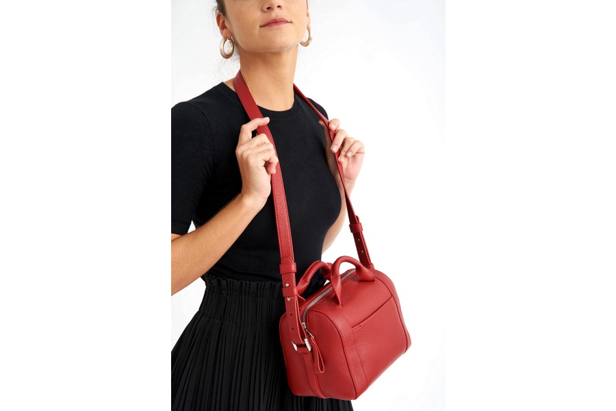 A mini bowling bag in leather, ideal as a bag for work or a light-weight bag for travel. This leather bowler bag has beautiful finish and comes with the signature front pocket of L5 leather bags collection by Lucrin. Available in several colours, this women bag can be customised as per your wish. The relatively small size of this classy ladies bag makes it a favourite when you need a small handbag while you are on the move for work or leisure. Inside, you will find a zipped pocket meant for your essentials, and the shoulder strap is of course adjustable.
