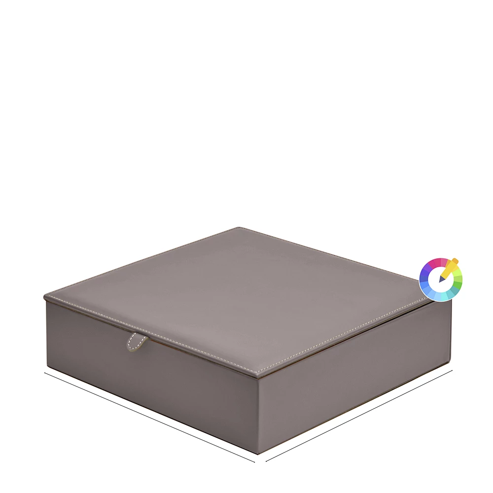 Are you tired of looking for a storage box that will fit your space and needs perfectly? LUCRIN Geneva proposes an exclusive Custom Storage Box - the made-to-order solution to your storage issues. Crafted as meticulously as other boxes, this storage box also sports a sturdy base sheathed in leather and lined with microfibre inside to keep its containments scuff-free. Customise the length and width as per your needs and wants so as to create the perfect piece for your space while an appropriate depth of 7cm allows you to house several items without any issue. All our usual customisation options are also applicable to this product. Choose your leather type, colour and add engravings to create the perfect storage box for you!