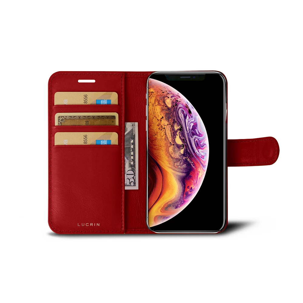 The leather wallet case for iPhone XS is all in one for your outings, whether professional or otherwise. Your iPhone XS is housed in a protective shell on one side and on the other you have the option to insert 3 credit cards. Under the flat pocket you can slip tickets or receipts. Everything is of course secured by a magnetic closure tab. This beautiful iPhone XS wallet can be personalised by a distinct engraving or a contrasting thread colour in a variety of leathers from the most classic to the most exotic.