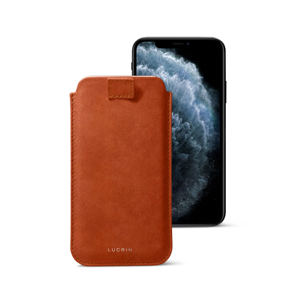 This iPhone 11 Pro Max case model is a favourite among those who use their iPhone regularly. It is designed with a pull tab, which allows easy extraction of the phone from its slim case. Made from genuine leather with high-end microfibre lining, we propose this slim iPhone 11 Pro Max sleeve in a large selection of leathers and colours. Customise the iPhone case as per your wish, with amazing options like initials engraving, contrasting thread colour, amongst others.