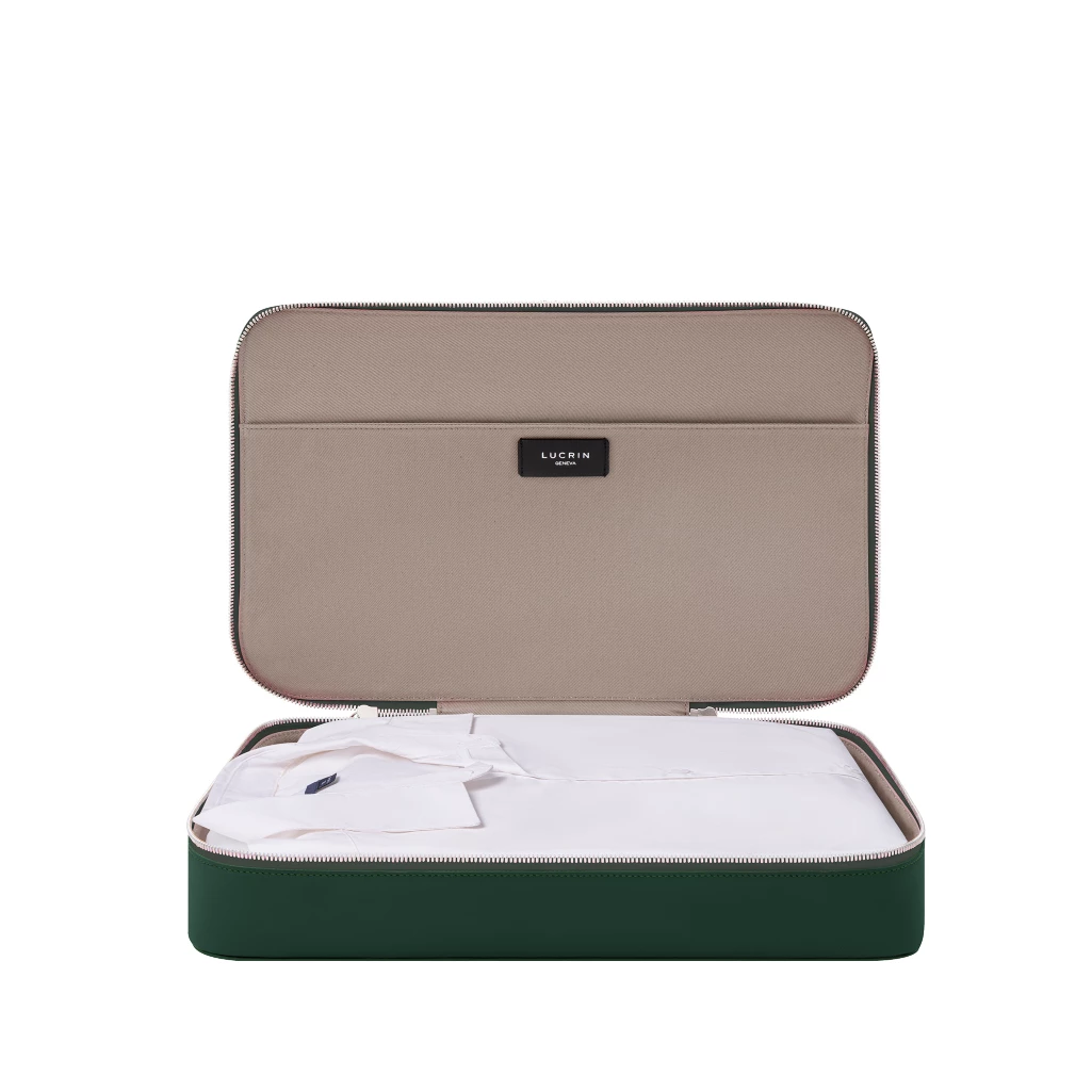 Every great journey begins with thoughtful organisation. Handcrafted in full-grain leather, this large travel cube brings effortless elegance to your suitcase. Created for intuitive packing, it becomes a trusted companion wherever you go, from weekend escapes to long-haul adventures. Thoughtfully conceived as part of LUCRIN’s packing cubes for travel collection, this travel organiser blends refined aesthetics with functional precision. Its cotton-lined interior and flat pocket keep garments, undergarments, or smaller essentials neatly arranged. Beyond clothing, it adapts beautifully for cables, chargers, or accessories, ensuring every journey feels impeccably ordered. Made to travel as gracefully as you do, this large travel cube balances purpose with quiet sophistication. Choose your colour, add your initials, and let it tell the story of your travels.