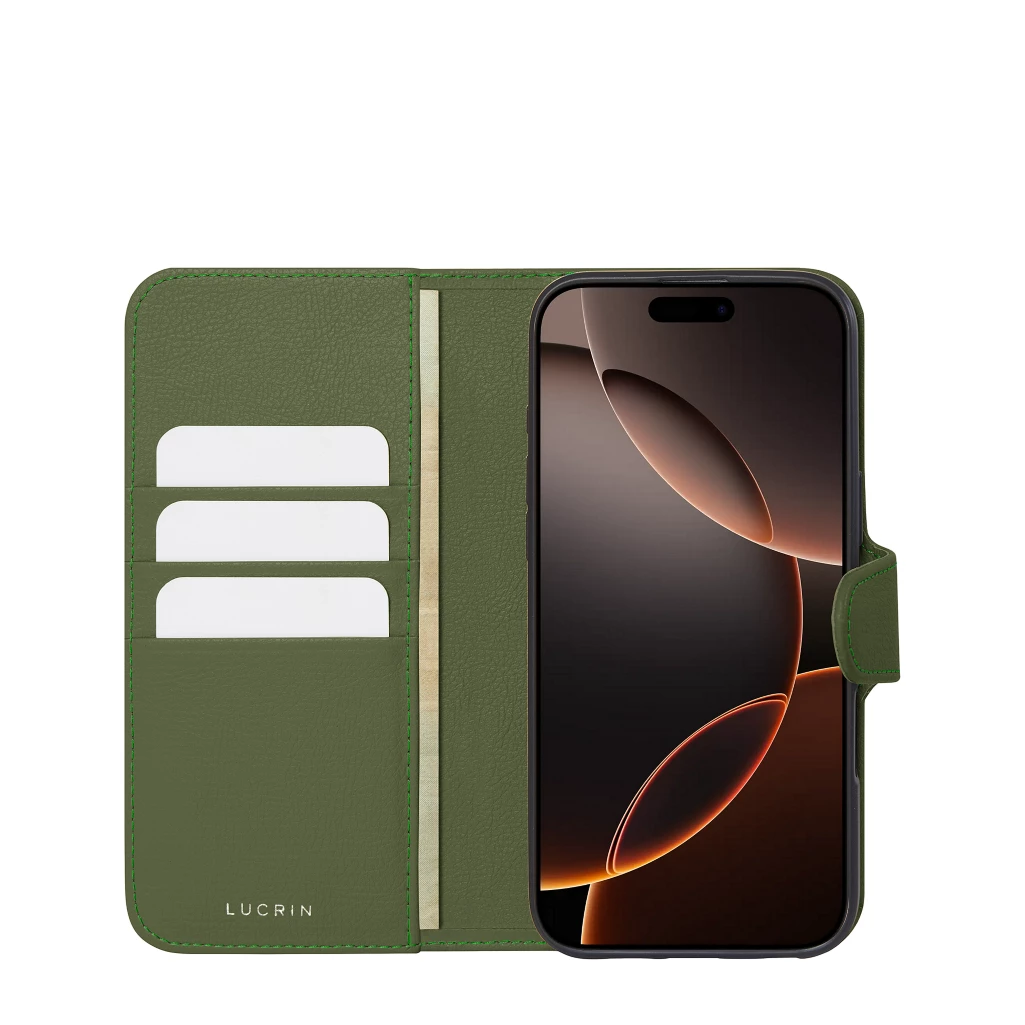 Luxury Wallet Case - iPhone 16 Pro Max - Light Green - Vegan Leather