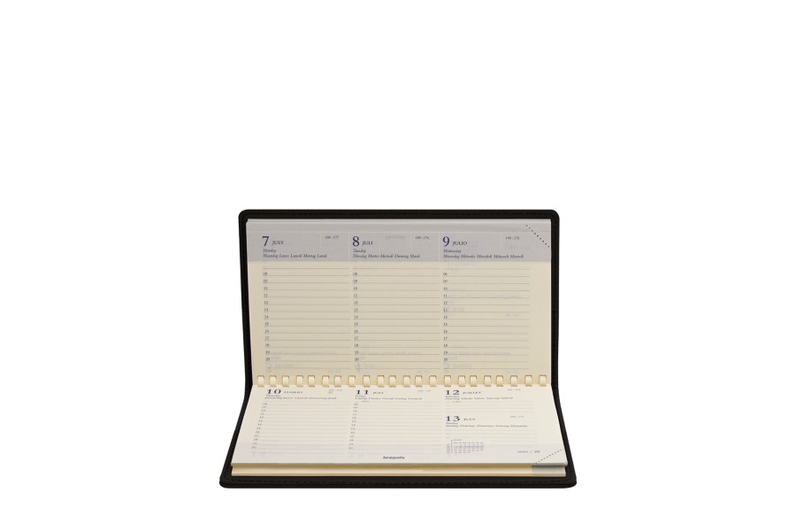 Pocket 2019 diary/organizer in full grain leather. Delivered with an Omniplan Brepols spiral-bound, week-on-two pages planning diary for the year, a phone index, a planning and world maps. Diaries start from January 1st, to December 31st