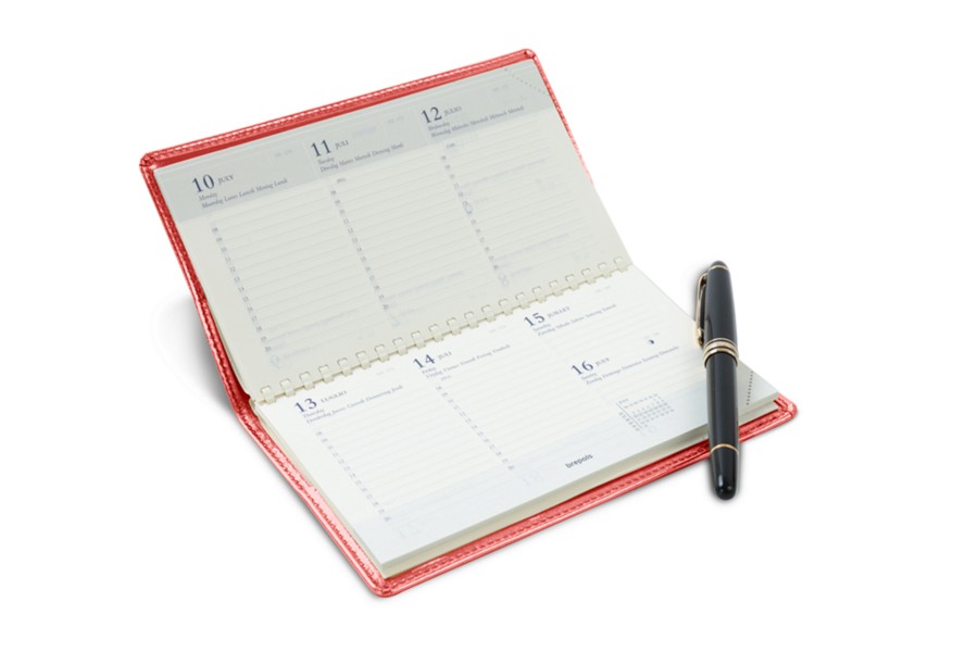Pocket 2019 diary/organizer in full grain leather. Delivered with an Omniplan Brepols spiral-bound, week-on-two pages planning diary for the year, a phone index, a planning and world maps. Diaries start from January 1st, to December 31st