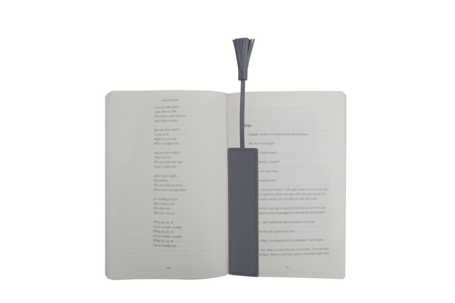 Bookmark with tassel - Mouse-Grey - Smooth Leather