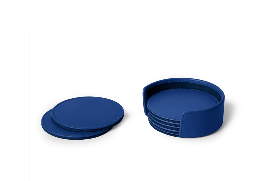 Set of 6 coasters - Royal Blue - Smooth Leather