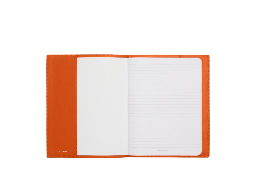 Made in authentic premium leather, this protective cover for A5-format notebook (of around 50 pages) is a beautifying and durable product. Beautifying, as it will turn your simple copybook into something much more classy. Durable, as it is conceived expertly by the finest leather craft artisans of Lucrin. The copybook is well held in place by two leather bands on each side in which you can slide in the hard cover of your notebook.