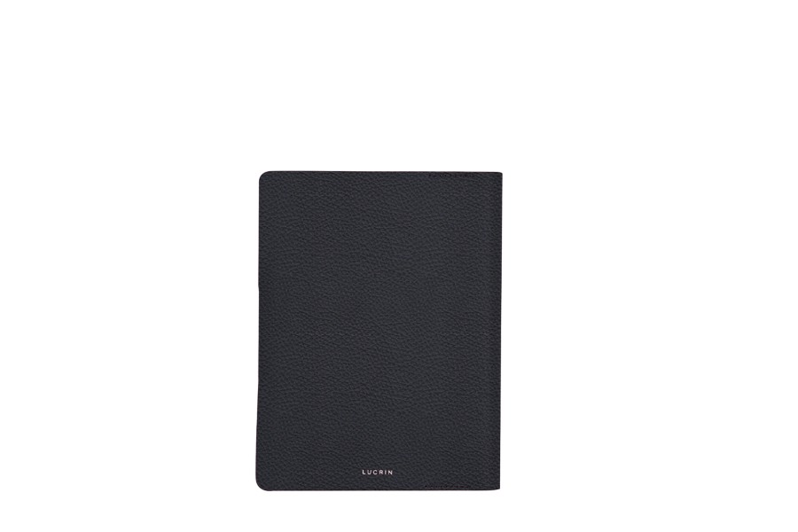 A5 Rechargeable Notebook Cover - Navy Blue - Granulated Leather