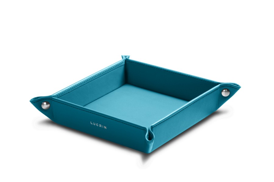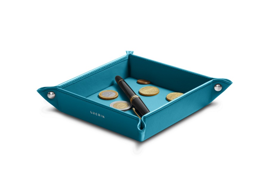 Small square catchall (12 x 12 x 3 cm) - Turquoise - Smooth Leather