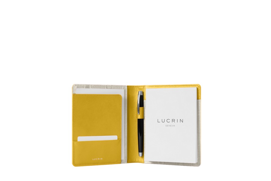 This office accessory is highly popular with professionals: the multipurpose A6 portfolio. Equipped with a curved flat pocket on the left - with a slot for business cards - and an A6 notepad on the right, this top quality leather portfolio also features a loop to hold your favorite pen. This A6 portfolio keeps everything you need for meetings and business trips always at hand. Please note that replacement A6 notepad refills are available for purchase on our website.