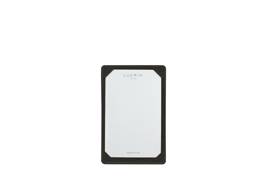 This pocket writing pad of relatively large format is ideal for meetings or press conferences. It is conceived in premium authentic leather, and the sheets are kept well in place thanks to four slits in each corner. At the back of this simple yet elegant pocket note pad, there is a large flat pocket which can store a refill of the paper notes.