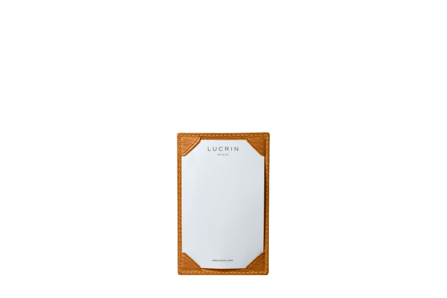 This writing pad, which is really not bulky in terms of size, is ideal to jot down notes, thoughts or phone numbers. On one side, you have the basic writing pad, where the sheets are held by 4 notched corners. On the other side, you have a slit in which you can slip in some paper refills or any card with standard credit card dimensions. Of course, all our writing pads are delivered with white LUCRIN sheets coming in some paper blocks refills.