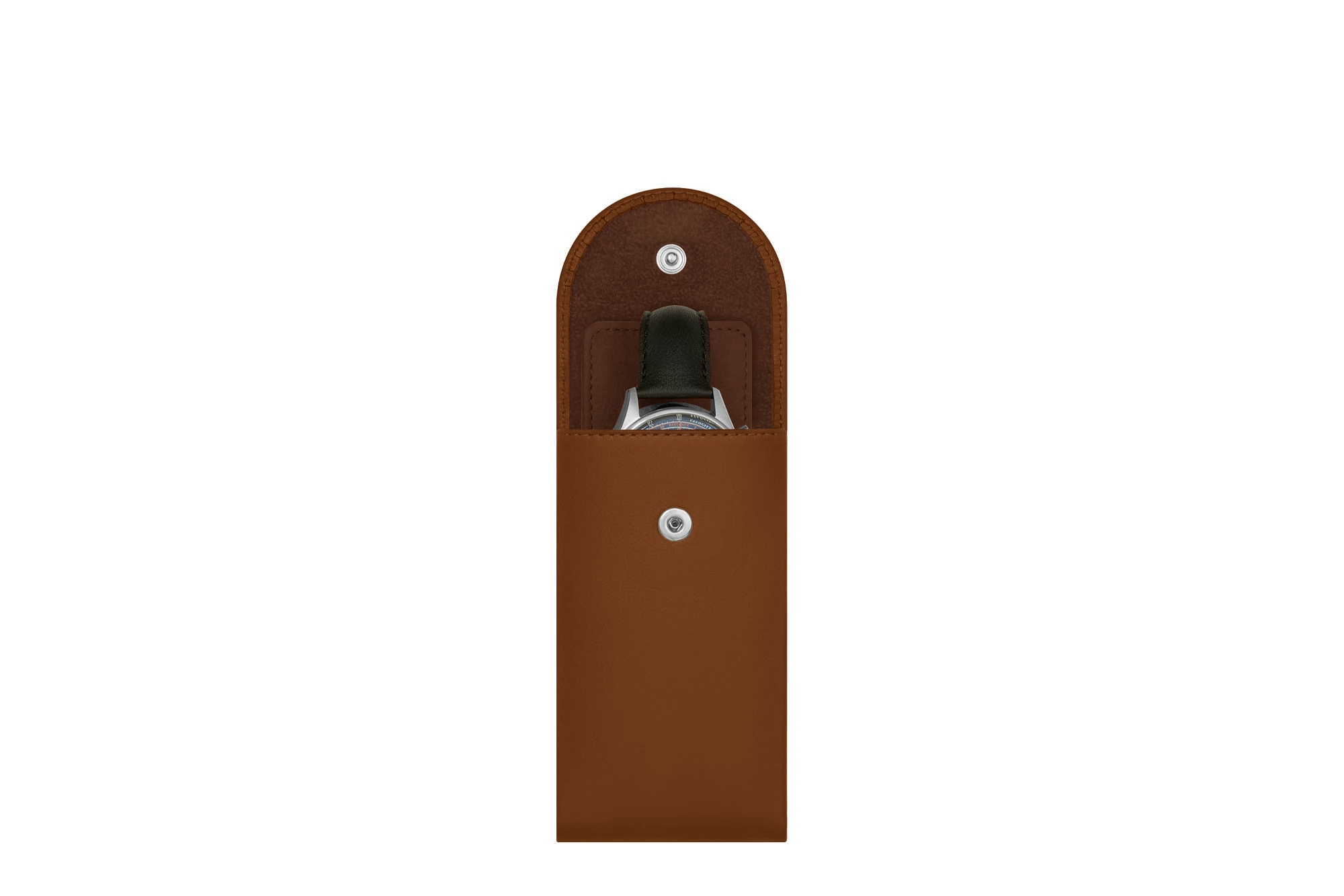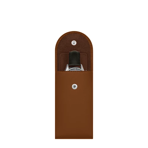 Whether to keep in your watch or carry it on travel, you will love this very practical watch holder. Designed in a compact shape, it has a microfiber protective separator that goes in between the buckle and the back of your watch, specially when you are on the move. Elegant and refined, this leather watch travel case is totally customisable, in a wide range of colours and leathers, on which you can add a sublime engraving for instance. Flap closure with a hidden snap button.